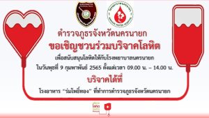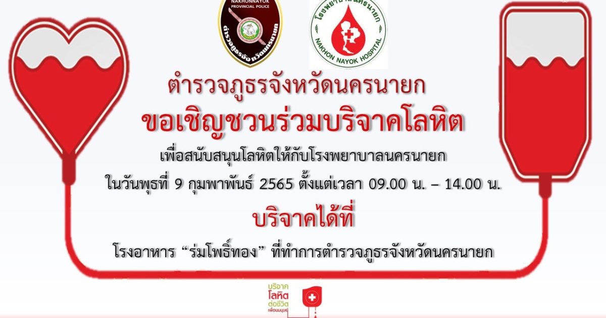 เชิญชวนร่วมบริจาคโลหิต 1 กุมภาพันธ์ 2565 โดย adminnakhonnayok / ข่าวประชาสัมพันธ์,ข่าวฝากประชาสัมพันธ์ FacebookFacebookXXLINELine