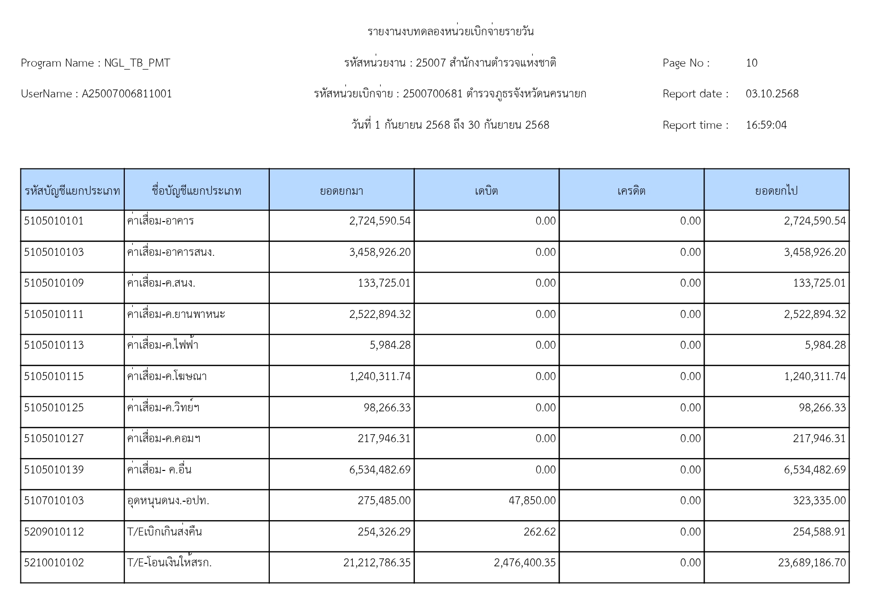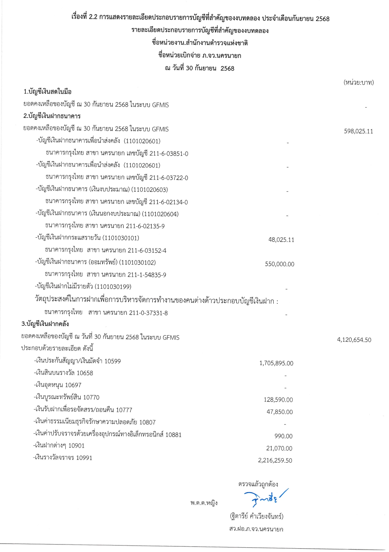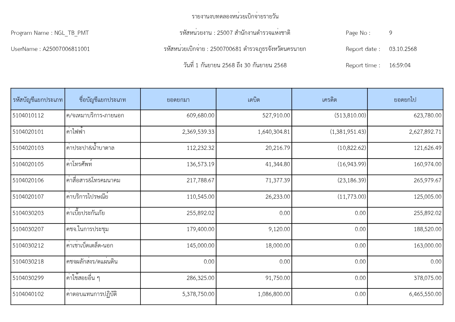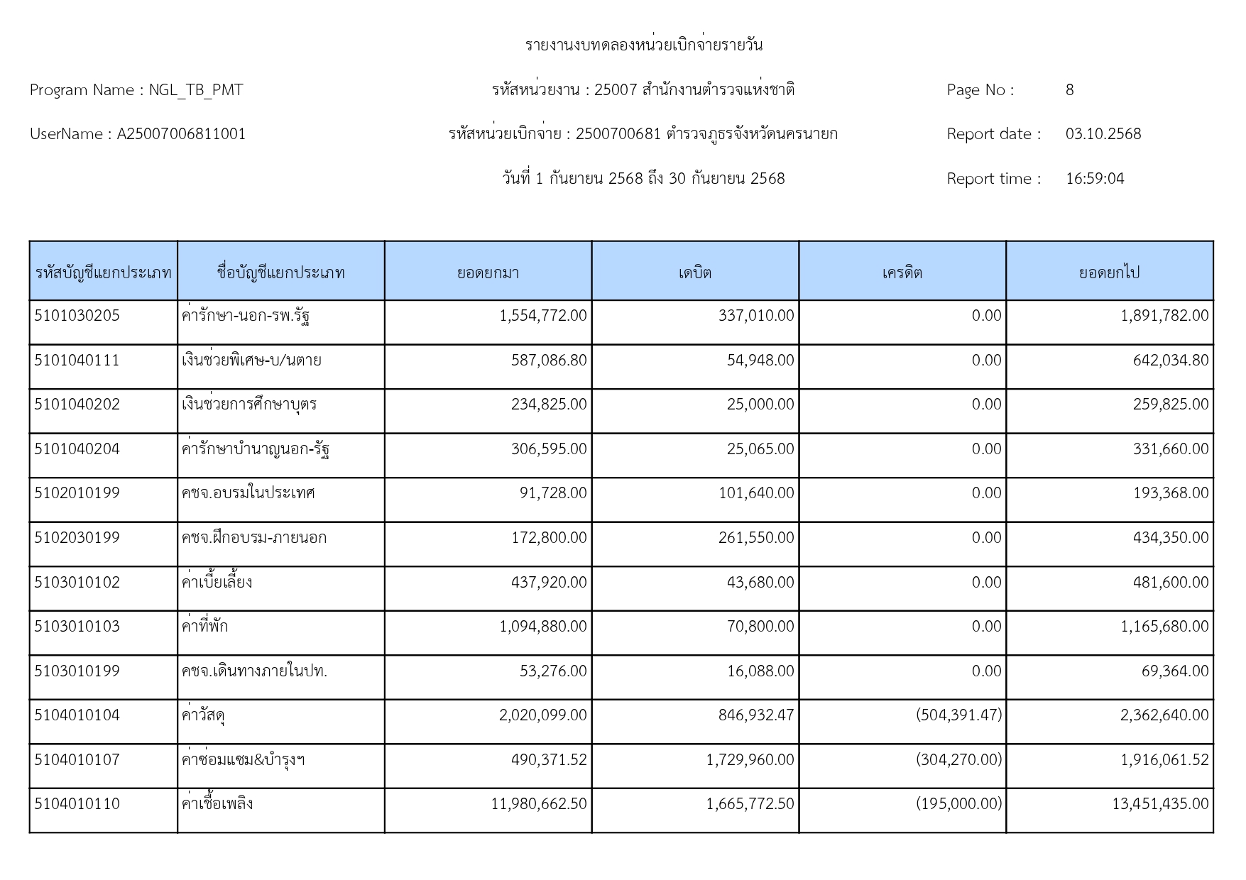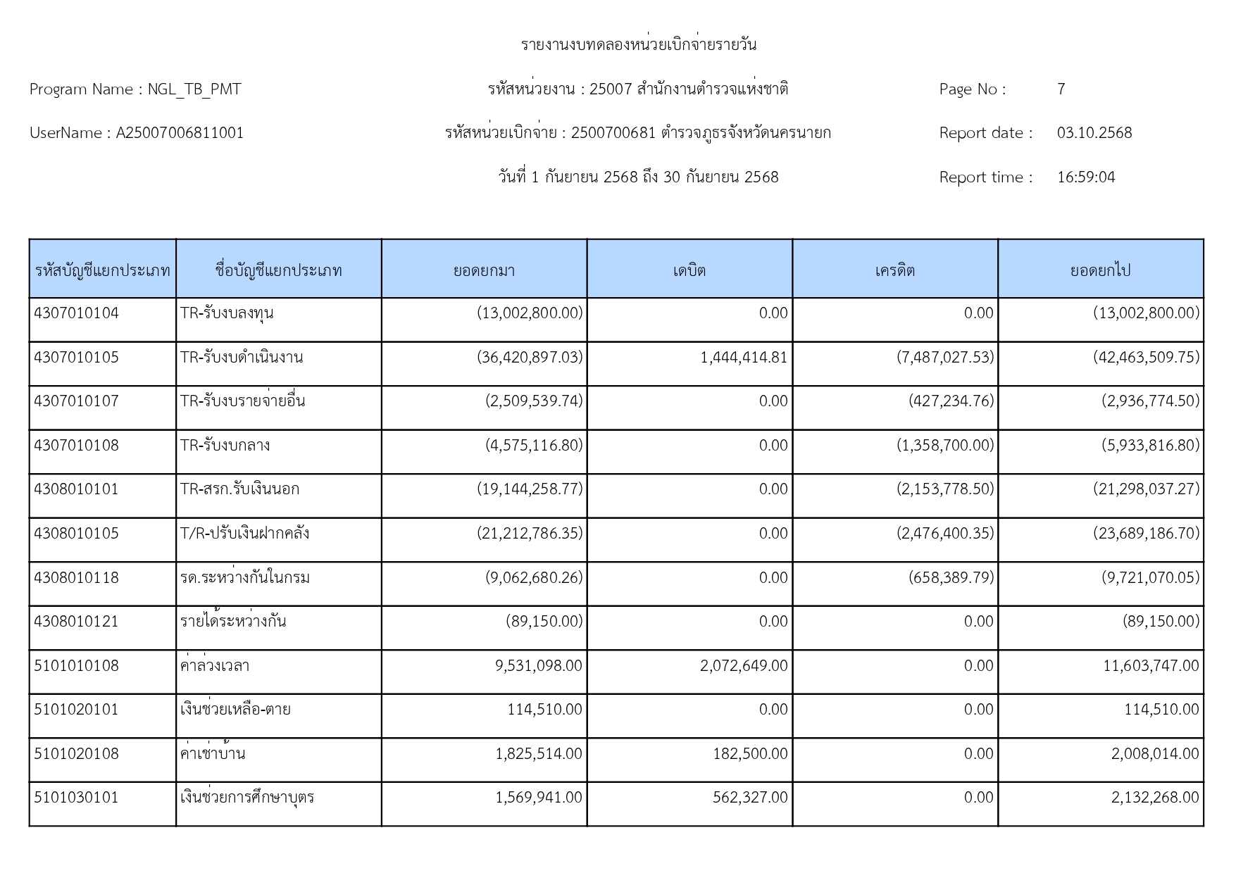 ผลการดำเนินงานทางบัญชีของตำรวจภูธรจังหวัดนครนายก ปีงบประมาณ68 15 ตุลาคม 2568 โดย adminnakhonnayok / ข่าวประชาสัมพันธ์,ข่าวจัดซื้อจัดจ้าง,งานงบประมาณแผนงาน 1.รายงานงบทดลองเดือนกันยายน 2568 [ดาวโหลดเอกสาร >>คลิ๊ก<<] 2.รายละเอียดประกอบรายการบัญชีที่สำคัญของงบทดลองประจำเดือนกันยายน2568 [ดาวโหลดเอกสาร >>คลิ๊ก<<] FacebookFacebookXXLINELine