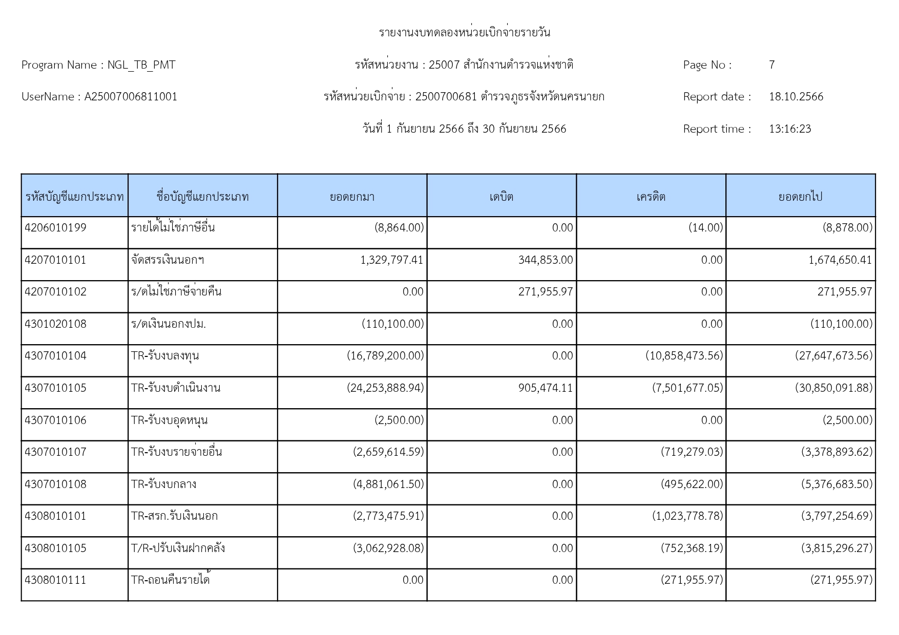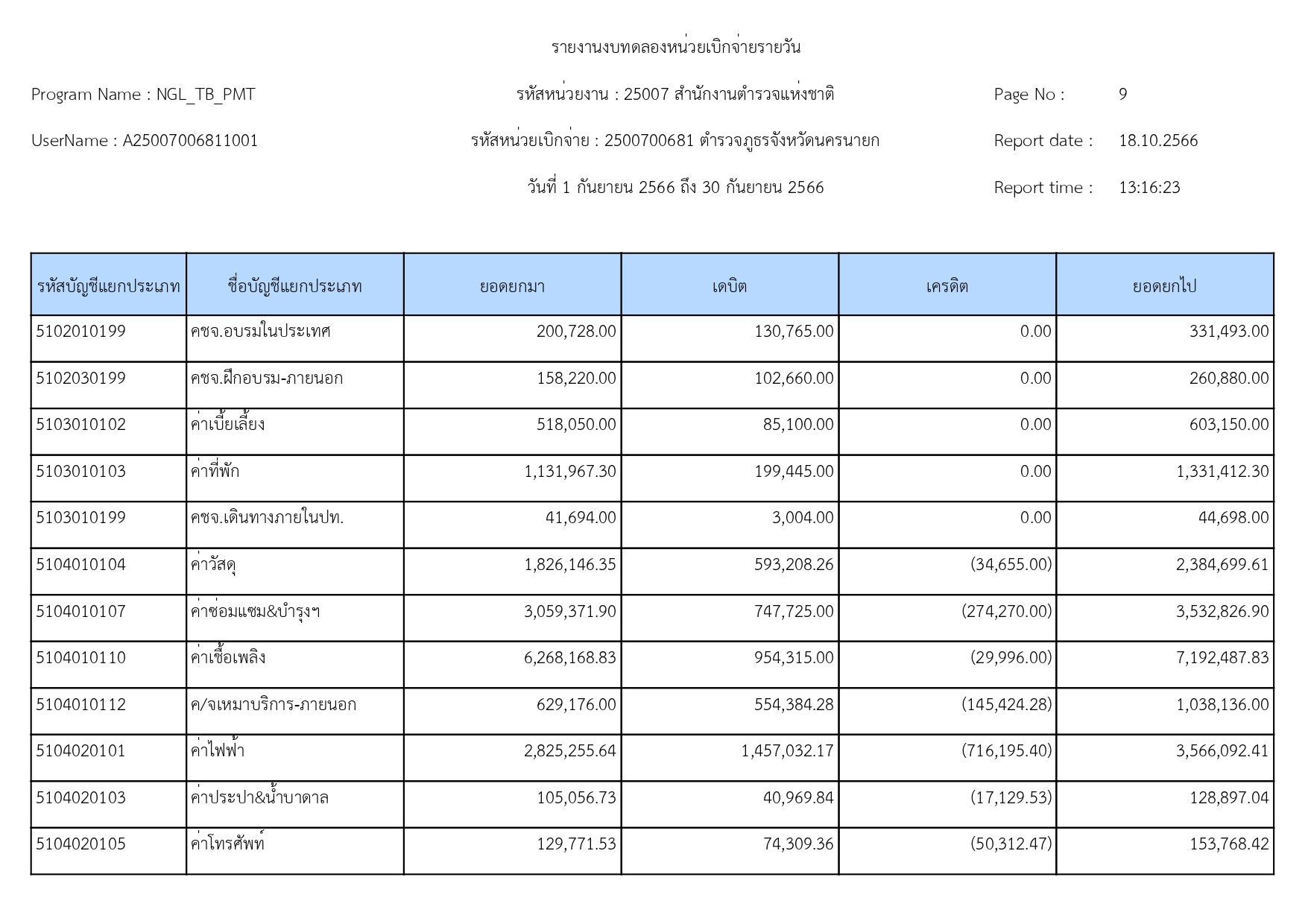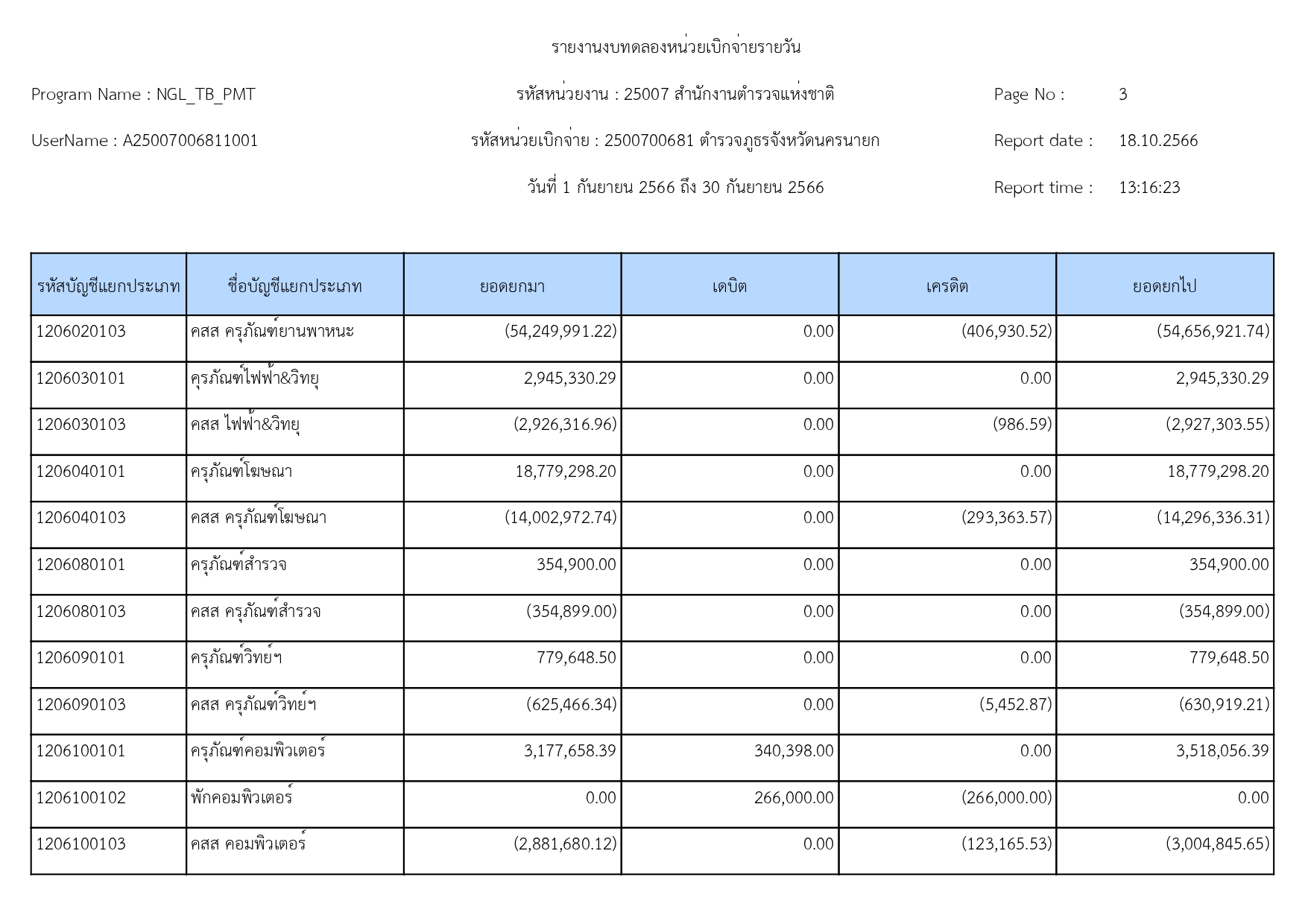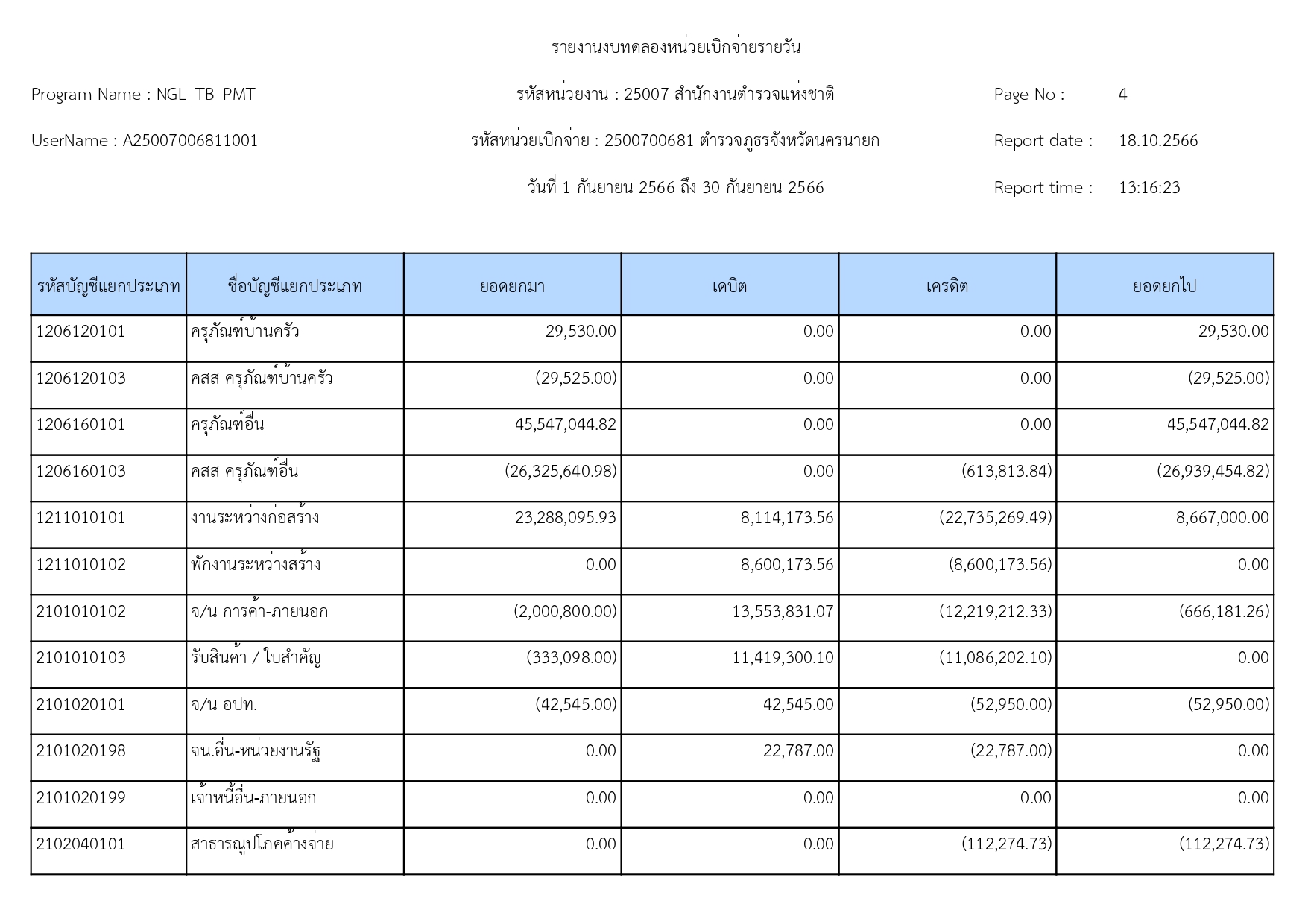 ผลการดำเนินงานทางบัญชีของตำรวจภูธรจังหวัดนครนายก 19 ตุลาคม 2566 โดย adminnakhonnayok / ข่าวประชาสัมพันธ์,ข่าวจัดซื้อจัดจ้าง,งานงบประมาณแผนงาน 1.รายงานงบทดลองเดือนกันยายน 2566 [ดาวโหลดเอกสาร >>คลิ๊ก<<] 2.รายละเอียดประกอบรายการบัญชีที่สำคัญของงบทดลองประจำเดือนกันยายน2566 [ดาวโหลดเอกสาร >>คลิ๊ก<<] FacebookFacebookXXLINELine