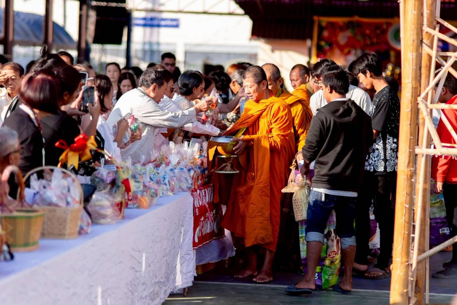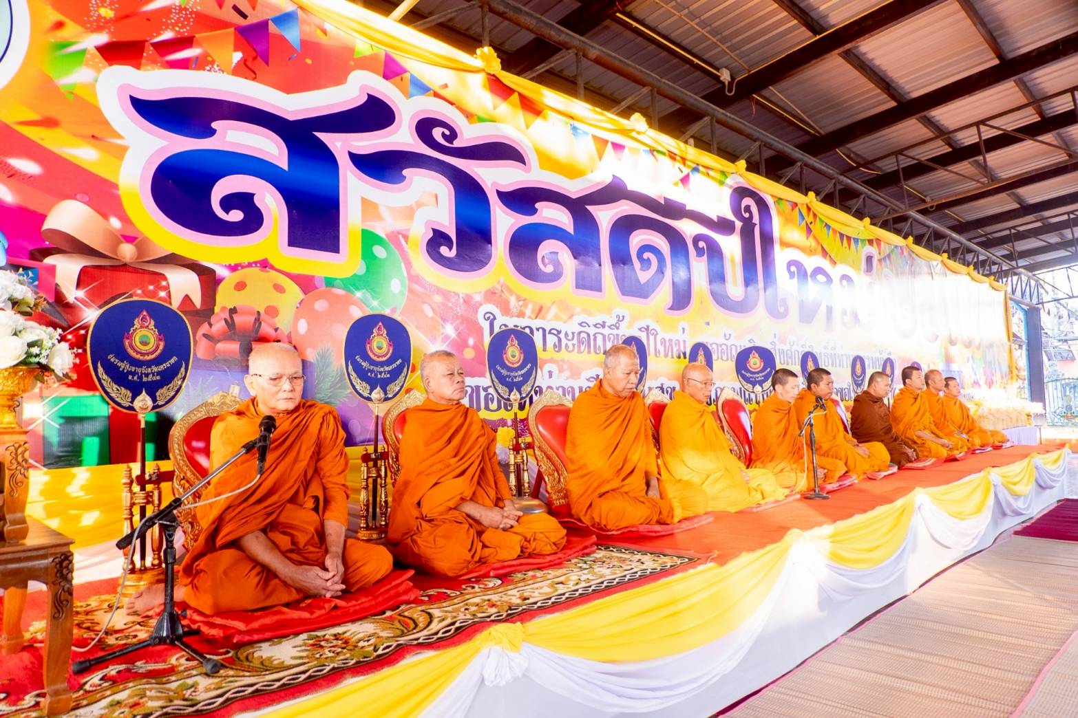 1 ม.ค.69 1 มกราคม 2569 โดย adminnakhonnayok / ภารกิจผู้บังคับบัญชา วันที่ 1 ม.ค 2569 เวลา 06.30 น. พ.ต.อ.สุขทัศน์ พุ่มพันธ์ม่วง รอง ผบก.ภ.จว.นครนายก พร้อมด้วยข้าราชการตำรวจ ภ.จว.นครนายก ร่วมกิจกรรมตักบาตรข้าวสารอาหารแห้งในงานประเพณีวันขึ้นปีใหม่ ประจำปี 2569 โดณ สวนเฉลิมพระเกียรติ ร.9 เทศบาลเมืองนครนายก อ.เมืองจังหวัดนครยกเวลา 09.00 น. พล.ต.ต.ประเสริฐ วิจิตรทัศนา ผบก.ภ.จว.นครนายก ร่วมลงนามถวายพระพรเนื่องโอกาสวันขึ้นปีใหม่ พ.ศ.2569 ณ ศาลาสหทัยสมาคม ในพระบรมมหาราชวัง FacebookFacebookXXLINELine