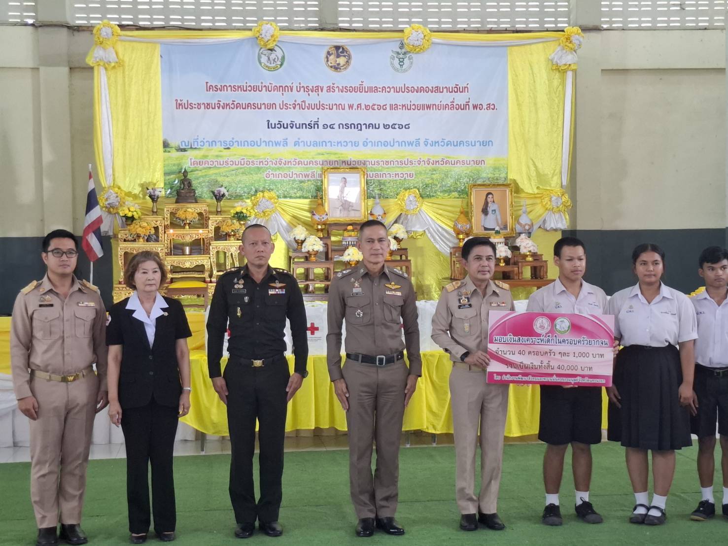 14 ก.ค.68 14 กรกฎาคม 2568 โดย adminnakhonnayok / ภารกิจผู้บังคับบัญชา วันนี้ (14 ก.ค. 2568) เวลา 10.00 น. พล.ต.ต.ปราโมทย์ งามประดิษฐ์ ผบก.ภ.จว.นครนายก พร้อมด้วยข้าราชการตำรวจ ภ.จว.นครนายก เข้าร่วม “โครงการบำบัดทุกข์ บำรุงสุข สร้างรอยยิ้มและความปรองดองสมานฉันท์ให้ประชาชนจังหวัดนครนายก” ประจำปีงบประมาณ พ.ศ.2568 ณ ที่ว่าการอำเภอปากพลี ต.เกาะหวาย อ.ปากพลี จ.นครนายก FacebookFacebookXXLINELine