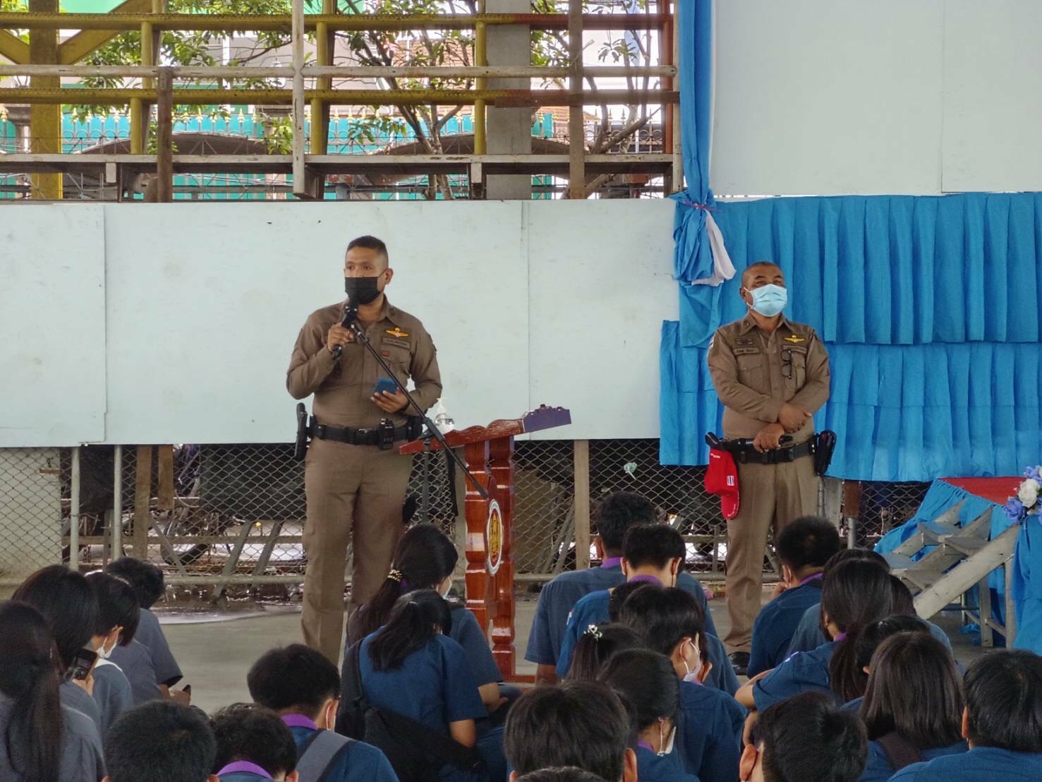 พ.ต.อ.เผ่าภากร รามนุช รอง ผบก.ภ.จว.นครนายก พร้อมด้วยคณะครูแม่ไก่ฯ และเจ้าหน้าที่ที่เกี่ยวข้อง ได้นำคณะเจ้าหน้าที่ วจ.สยศ.ตร. และ รร.นรต. ในการติดตามและประเมินผลของหลักสูตรหลังจากดำเนินการจัดอบรมเด็กและเยาวชนก่อการดีฯ ตามโครงการพัฒนาระบบการจัดการแก้ไขปัญหาแข่งรถในทางอย่างยั่งยืน และมอบหมายให้ พ.ต.ท.สรกรานต์ ดำกระบี่ รอง ผกก.ป.สภ.องครักษ์ เป็นหัวหน้าวิทยากร พร้อมชุดวิทยากรฯ ร่วมกับ สภ.เมืองนครนายก ดำเนินการ/แนะนำการปฏิบัติในการเผชิญเหตุการกราดยิง (Active shooter) โดยมีหัวข้อเนื้อหา จำนวน 4 หัวข้อ เกี่ยวกับ
