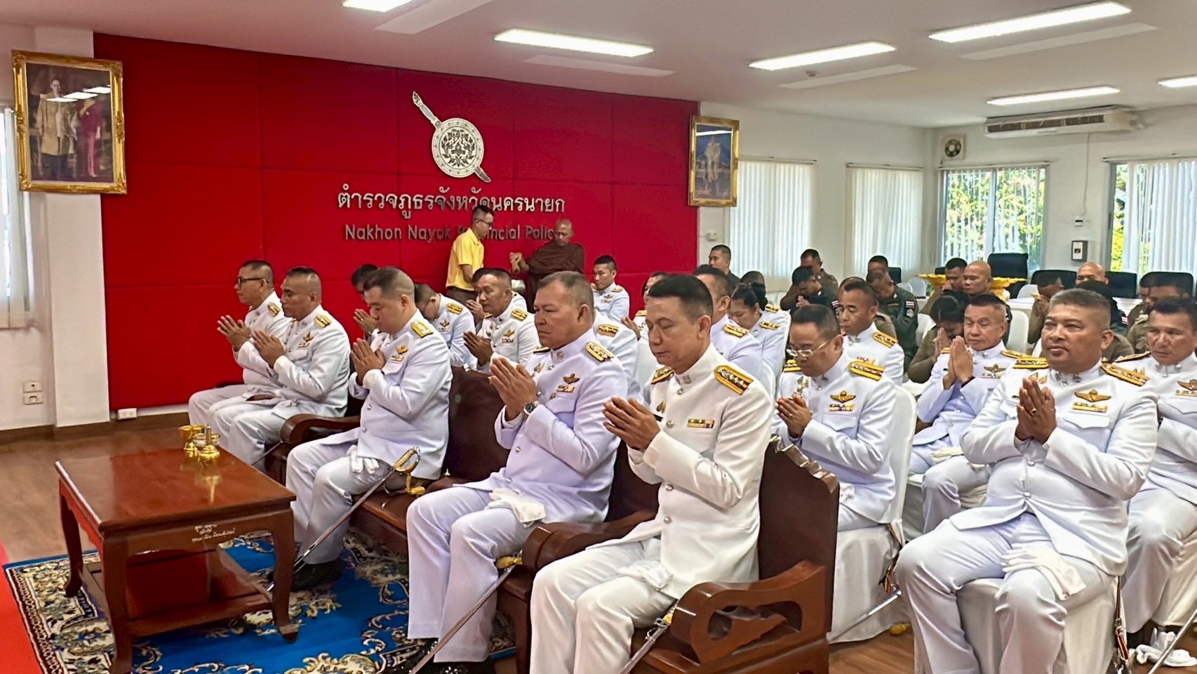 พร้อมด้วย ผกก.ในสังกัด ภ.จว.นครนายก, ข้าราชการตำรวจในสังกัด ภ.จว.นครนายก ร่วมพิธี “วันสถาปนาสำนักงานตำรวจแห่งชาติ” ประจำปี 2568 ณ ห้องประชุมชั้น 3 ภ.จว.นครนายก