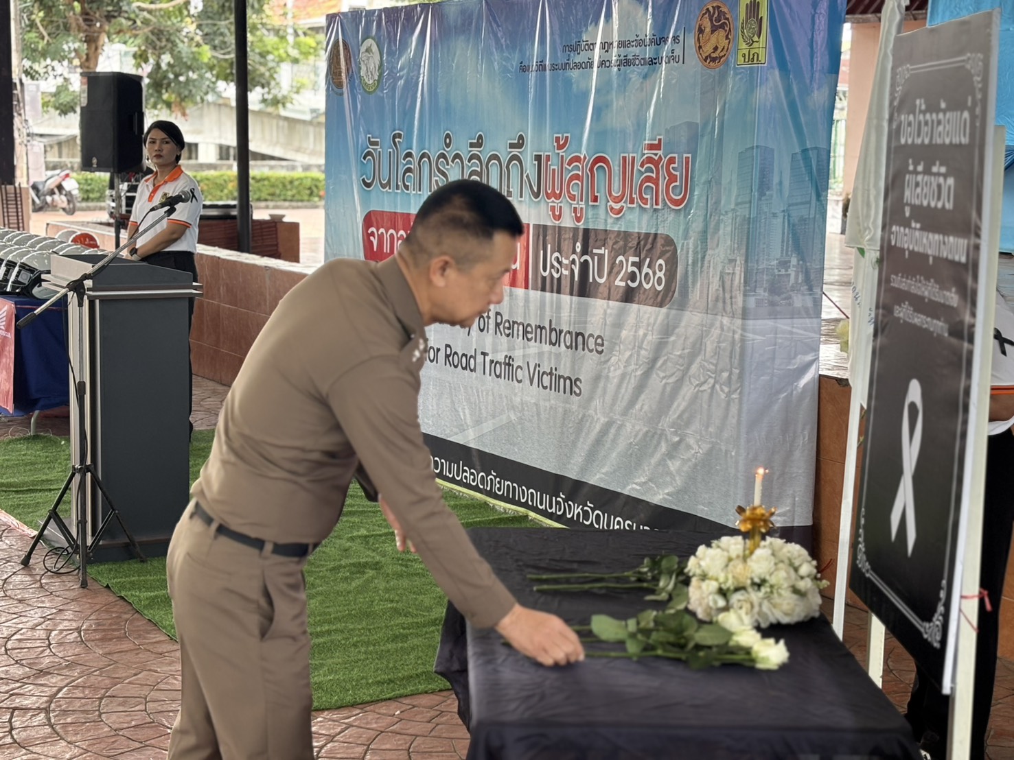 18 พ.ย.68 18 พฤศจิกายน 2568 โดย adminnakhonnayok / ภารกิจผู้บังคับบัญชา วันนี้( 18 พ.ย.68 )เวลา 09.00น. พ.ต.อ.ชวรัตน์ สสิวงศ์ รอง ผบก.ภ.จว.นครนายก ร่วมพิธีเปิด กิจกรรมรณรงค์เนื่องใน “วันโลกรำลึกถึงผู้สูญเสียจากอุบัติเหตุทางถนน”ประจำปี 2568 โดยมี นายชานน วาสิกศิริ ผู้ว่าราชการจังหวัดนครนายก เป็นประธานในพิธี ณ อาคารอเนกประสงค์ สวนสาธารณะเฉลิมพระเกียรติ ร.9 อ.เมือง จ.นครนายก FacebookFacebookXXLINELine