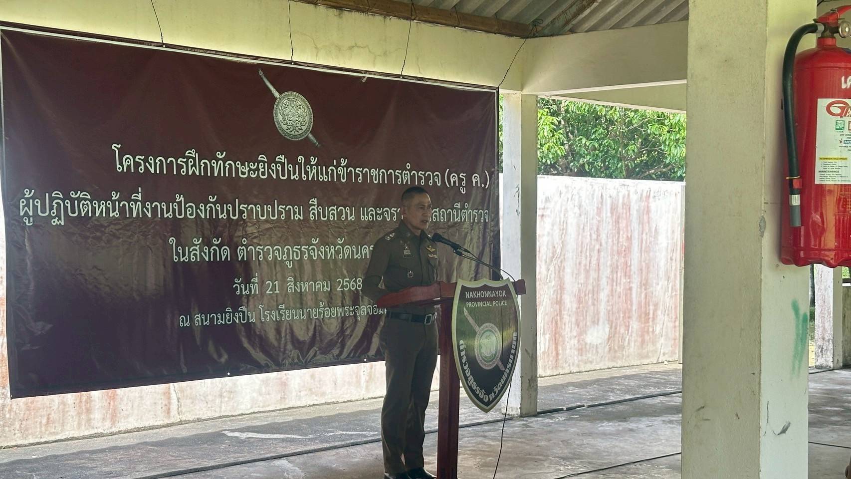 วันนี้ (21 ส.ค. 2568) เวลา 10.00 น. พล.ต.ต.ปราโมทย์ งามประดิษฐ์ ผบก.ภ.จว.นครนายก , พ.ต.อ.สุทธิศักดิ์ ปลื้มจิตต์ ผกก.ฝอ.ภ.จว.นครนายก , พ.ต.อ.ณรงค์ศักดิ์ วงศ์กาฬสินธุ์ ผกก.สภ.ปากพลี ,พ.ต.ท.ธงชัย หริ่มสืบ สว.สภ.นาหินลาด พ.ต.ท.ยิ่งยศ จันนา สวป.สภ.ดงละคร พร้อมด้วย ข้าราชการตำรวจตำรวจ ร่วมพิธีเปิดโครงการอบรมครูฝึก (ครู ค.) ณ สนามยิงปืนทราบระยะ 300 เมตร รร.จปร. อ.เมืองนครนายก จ.นครนายก