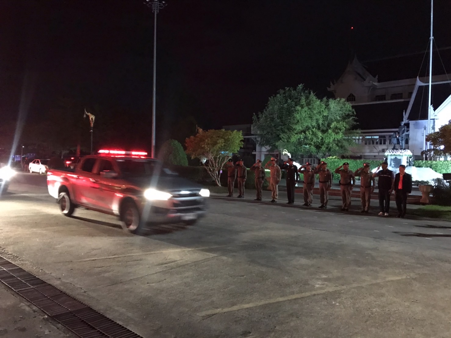 ณ บริเวณลานหน้าพระบรมราชานุสาวรีย์ พระบาทสมเด็จพระจุลจอมเกล้าเจ้าอยู่หัว ศาลากลางจังหวัดนครนายก