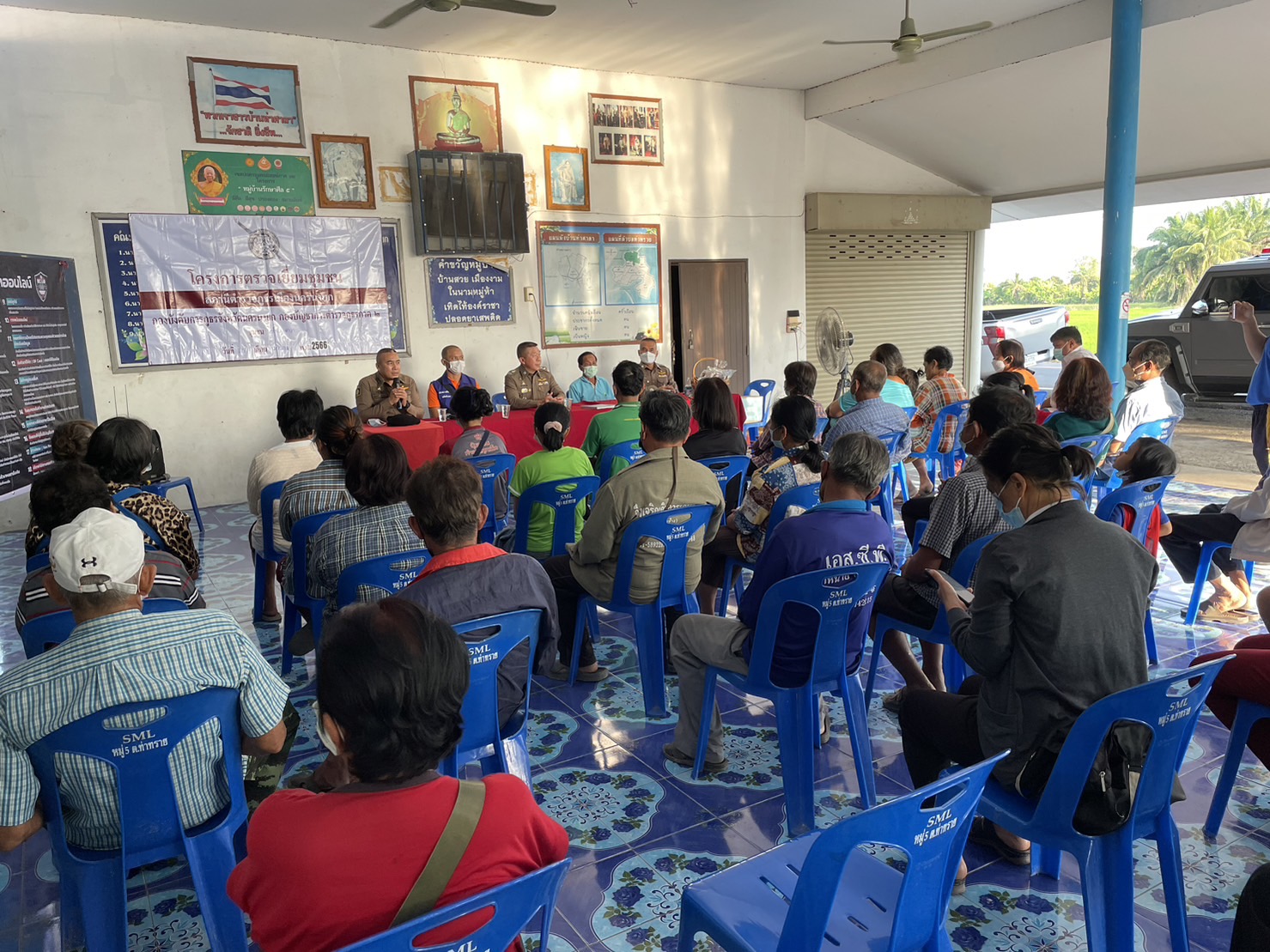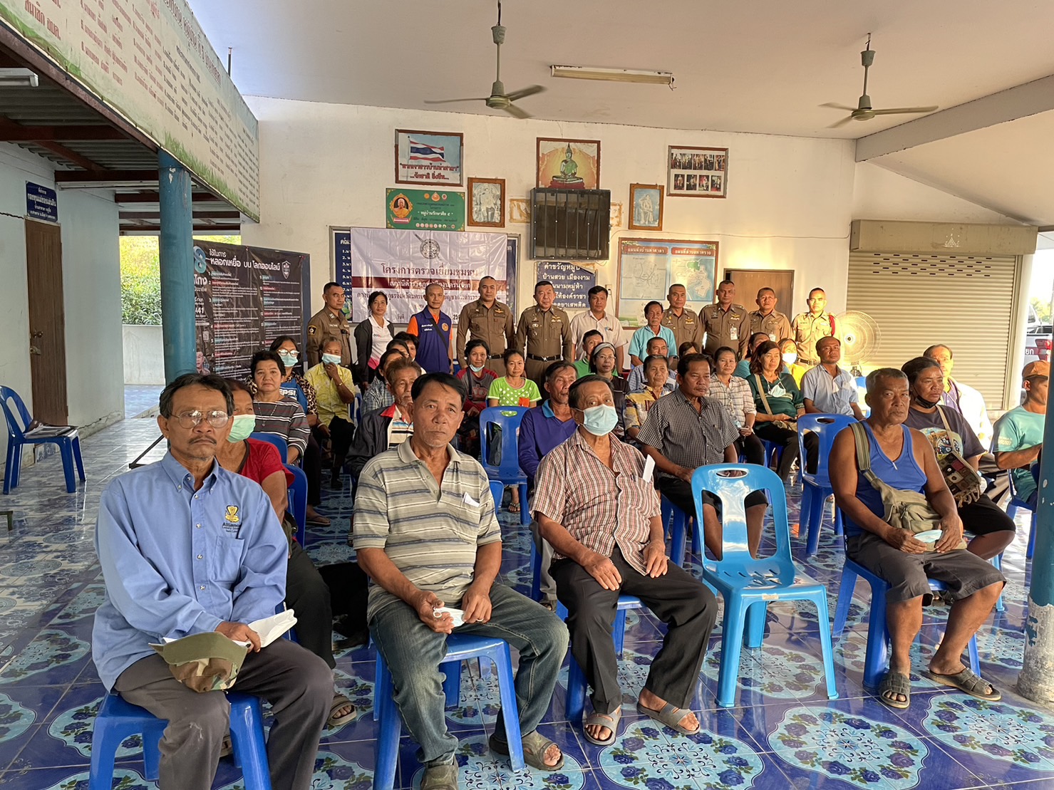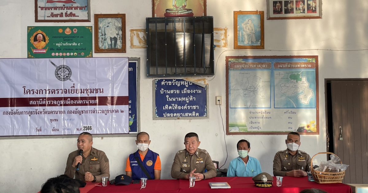 วันที่ 25 ม.ค.66 เวลา 16.30 น. พล.ต.ต.ภูมินทร์ สิงหสุต ผบก.ภ.จว.นครนายก, พ.ต.อ.เผ่าภากร รามนุช รอง ผบก.ภ.จว.นครนายก, พ.ต.อ.ทนงศักดิ์ คำมาตย์ ผกก.สภ.เมืองนครนายก พร้อมด้วยข้าราชการตำรวจ สภ.เมืองนครนายก ร่วมโครงการตรวจเยี่ยมชุมชม ได้ให้ความรู้เรื่องไซเบอร์วัคซีน พร้อมทั้งขอความร่วมมือให้แจ้งเบาะแสยาเสพติด และให้ช่วยกันเป็นหูเป็นตาให้เจ้าหน้าที่ตำรวจเพื่อป้องกันเหตุอาชญากรรม ณ บ้านท่าศาลา หมู่ 5 ต.ท่าทราย อ.เมืองนครนายก จ.นครนายก