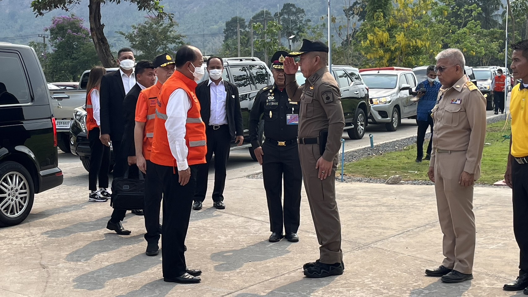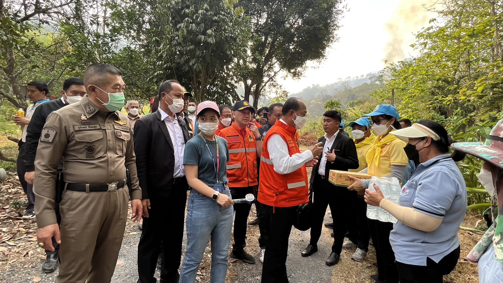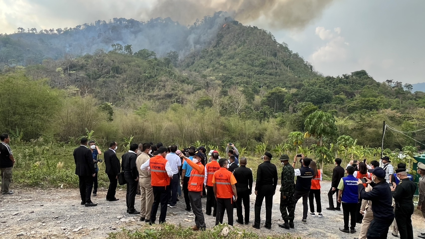 วันที่ 30 มี.ค.66 เวลา15.00 พล.อ.อนุพงษ์ เผ่าจินดา รัฐมนตรีว่าการกระทรวงมหาดไทย พล.ต.ต.ภูมินทร์ สิงหสุต ผบก.ภ.จว.นครนายก นายบัญชา เชาวนรินทร์ ผู้ว่าราชการจังหวัด พร้อมด้วยข้าราชการทุกภาคส่วน ลงพื้นที่ตรวจดูสถานการณ์ไฟป่า บริเวณหลัง ร.ร.จปร. ช่วงเขาแหลม และเขานางดำ โดยจุดแรกได้เดินทางไปยังกองอำนวยการ อบต.เขาพระ อ.เมืองนครนายก เพื่อฟังผลการปฏิบัติติงาน และสาเหตุ ที่เกิดไฟป่า จากนั้นได้เดินทางไปยังจุดเขาแหลม เพื่อประเมินสถานการณ์ การใช้ เฮลิเฮลิคอปเตอร์ จำนวน 3 ลำ จาก 1.ปภ.ak-32 / 2.Mi-17 / 3.กรมอุทยาน อีก 1 ลำในการดับไฟป่าครั้งนี้ โดยได้มีการสกัดต้นเพลิงที่ช่วงเขานางดำ เป็นสำคัญเพื่อไม่ให้ลามไปยังผาตะแบกเป็นรอยต่อ จ.สระบุรี