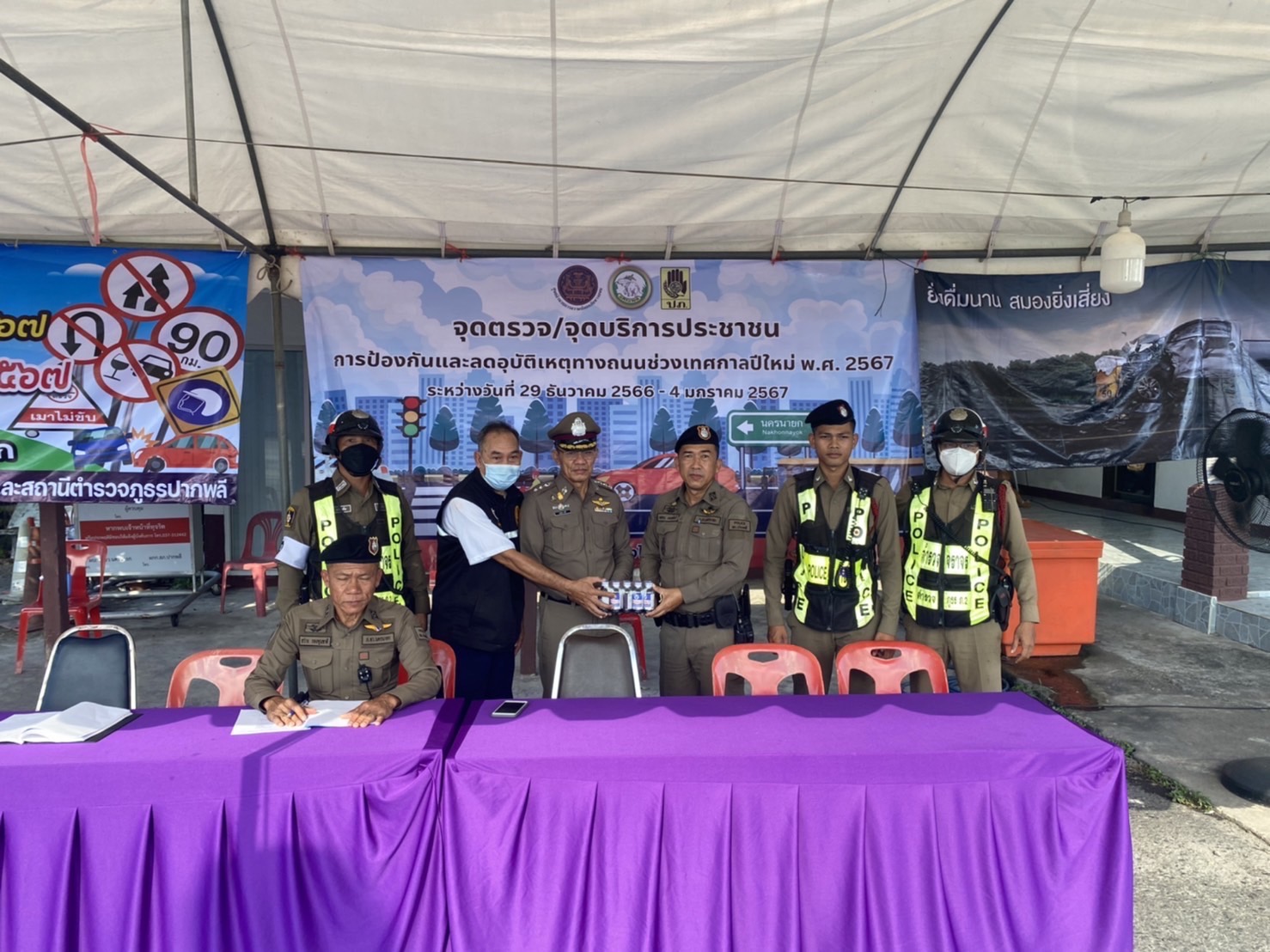 เวลา 22.50 น. พ ต.อ.อรรฆพงศ์ สุนทรวิภาต รอง ผบก.ภ.จว.นครนายก ได้มาตรวจเยี่ยมจุดบริการประชาชน แยกบุ่งกระเบา พบข้าราชการตำรวจและฝ่ายปกครอง อยู่ปฏิบัติหน้าที่ ณ จุดบริการประชาชน กำชับให้ดูแลความปลอดภัย อำนวยความสะดวกให้แก่ประชาชนผู้ใช้รถใช้ถนน ในเทศกาลปีใหม่