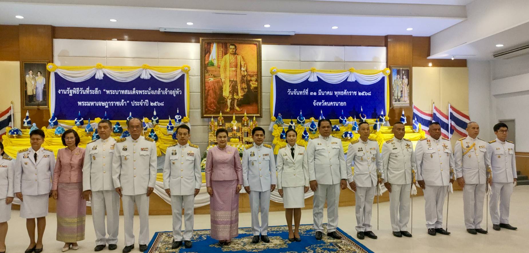 31 มี.ค.68 31 มีนาคม 2568 โดย adminnakhonnayok / ภารกิจผู้บังคับบัญชา วันที่ 31 มี.ค 2568 เวลา 07.00 น. พ.ต.อ.เผ่าภากร รามนุช รอง ผบก.นครนายก พร้อมด้วยข้าราชการตำรวจ ภ.จว.นครนายก ร่วมงานรัฐพิธีวันที่ระลึก “พระบาทสมเด็จพระนั่งเกล้าเจ้าอยู่หัว พระมหาเจษฎาราชเจ้า“ ประจำปี 2568 ณ หอประชุมสุพรรณิการ์ ชั้น 2 อาคารศูนย์อาหารปลอดภัยและ นันทนาการบริการประชาชน ศาลากลางจังหวัดนครนายก โดยมี นาย ชานน วาสิกศิริ ผู้ว่าราชการจังหวัดนครนายก เป็นประธานในพิธี FacebookFacebookXXLINELine