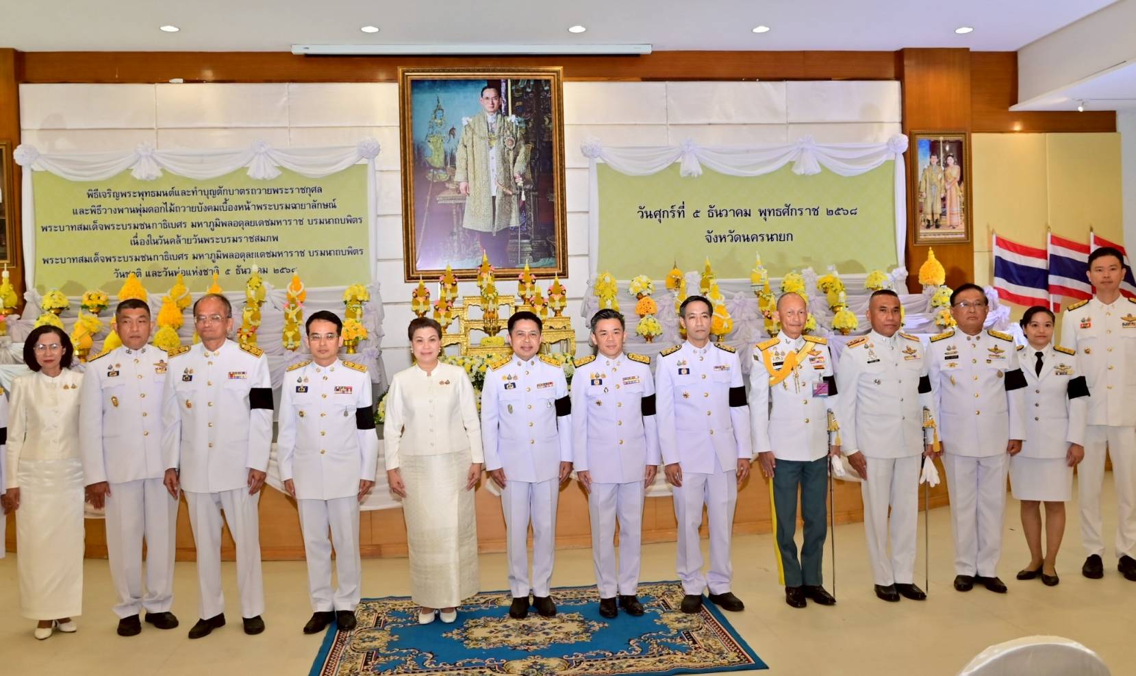 – เวลา 07.00 น. พ.ต.อ.เผ่าภากร รามนุช รอง ผบก.ฯ รรท.ผบก.ภ.จว.นครนายก พร้อมด้วยข้าราชการตำรวจภูธรจังหวัดนครนายก ร่วมพิธีเจริญพระพุทธมนต์และทำบุญตักบาตรถวายพระราชกุศล และพิธีวางพานพุ่มดอกไม้ถวายบังคมเบื้องหน้าพระบรมฉายาลักษณ์ พระบาทสมเด็จพระบรมชนกาธิเบศร มหาภูมิพลอดุลยเดชมหาราช บรมนาถบพิตร เนื่องในวันคล้ายวันพระบรมราชสมภพ พระบาทสมเด็จพระบรมชนกาธิเบศร มหาภูมิพลอดุลยเดชมหาราช บรมนาถบพิตร วันชาติ และวันพ่อแห่งชาติ 5 ธันวาคม 2568 ณ ศาลากลางจังหวัดนครนายก โดยมีผู้ว่าราชการจังหวัดนครนายกเป็นประธาน