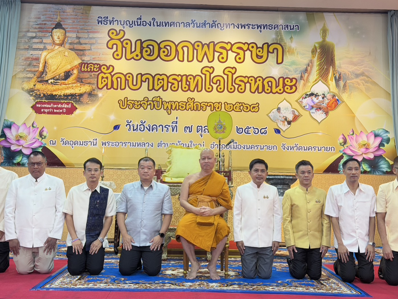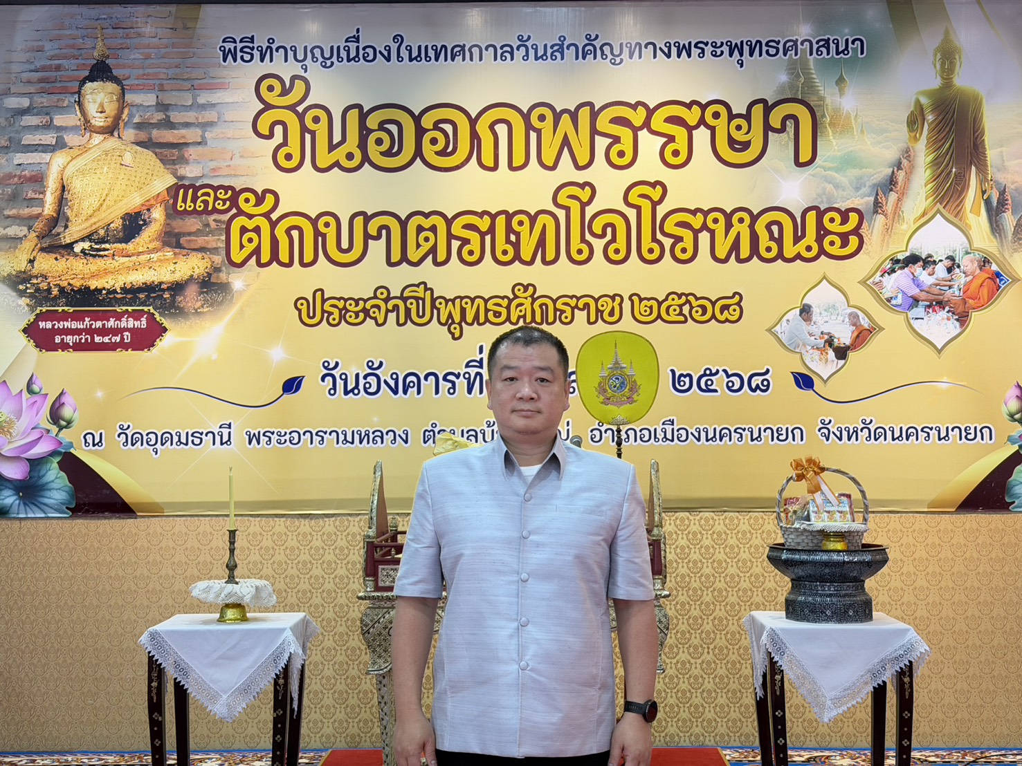 7 ต.ค.68 7 ตุลาคม 2568 โดย adminnakhonnayok / ภารกิจผู้บังคับบัญชา วันนี้(7 ต.ค.69)เวลา 07.00 น. พล.ต.ต.ประเสริฐ วิจิตรทัศนา ผบก.ภ.จว.นครนายก ร่วมพิธีทำบุญตักบาตรเทโวโรหณะ เนื่องในวันออกพรรษา ประจำปีพุทธศักราช 2568 ณ วัดอุดมธานี พระอารามหลวง โดยมี นายชานน วาสิกศิริ ผู้ว่าราชการจังหวัดนครนายกเป็นประธาน FacebookFacebookXXLINELine