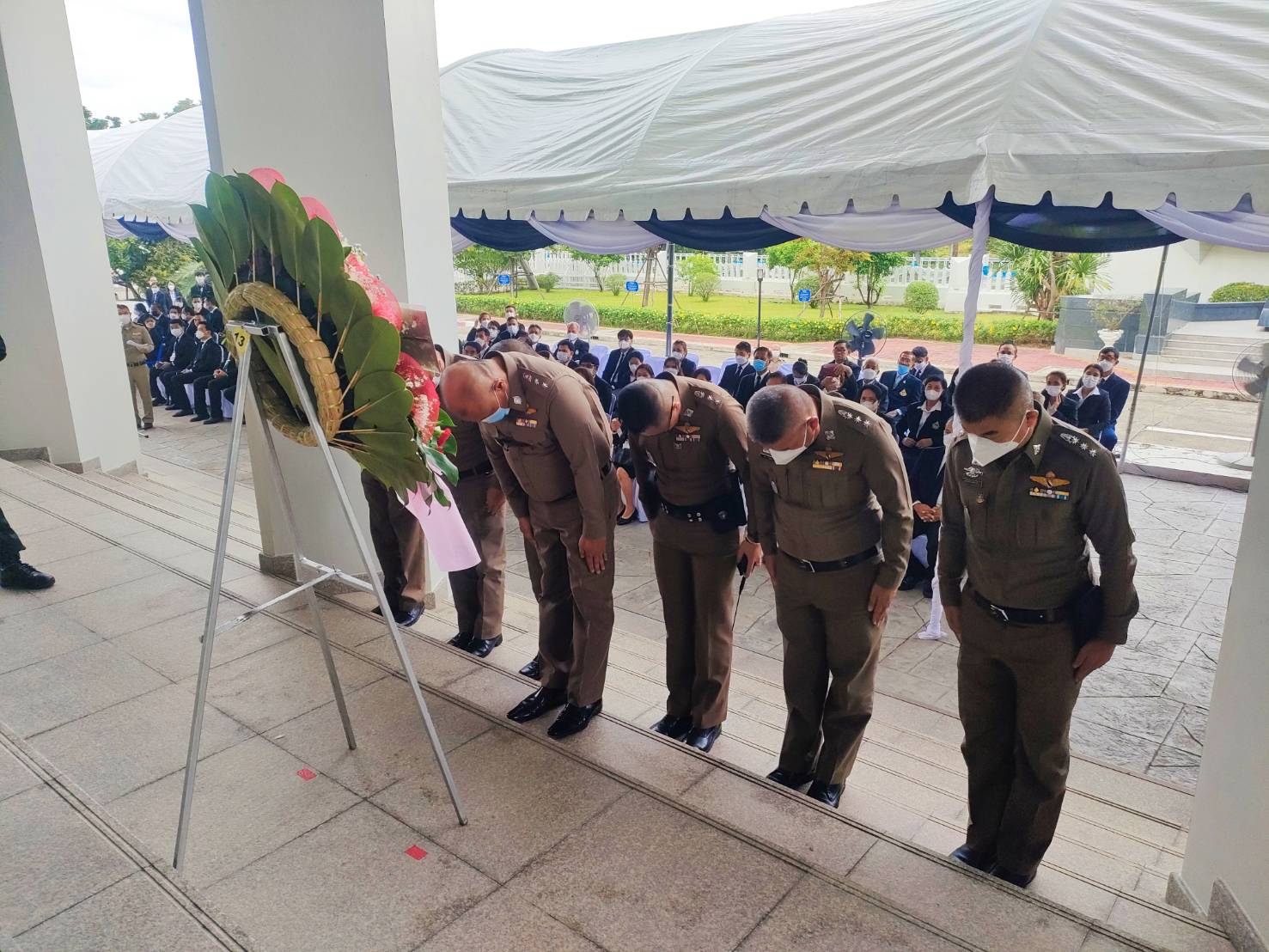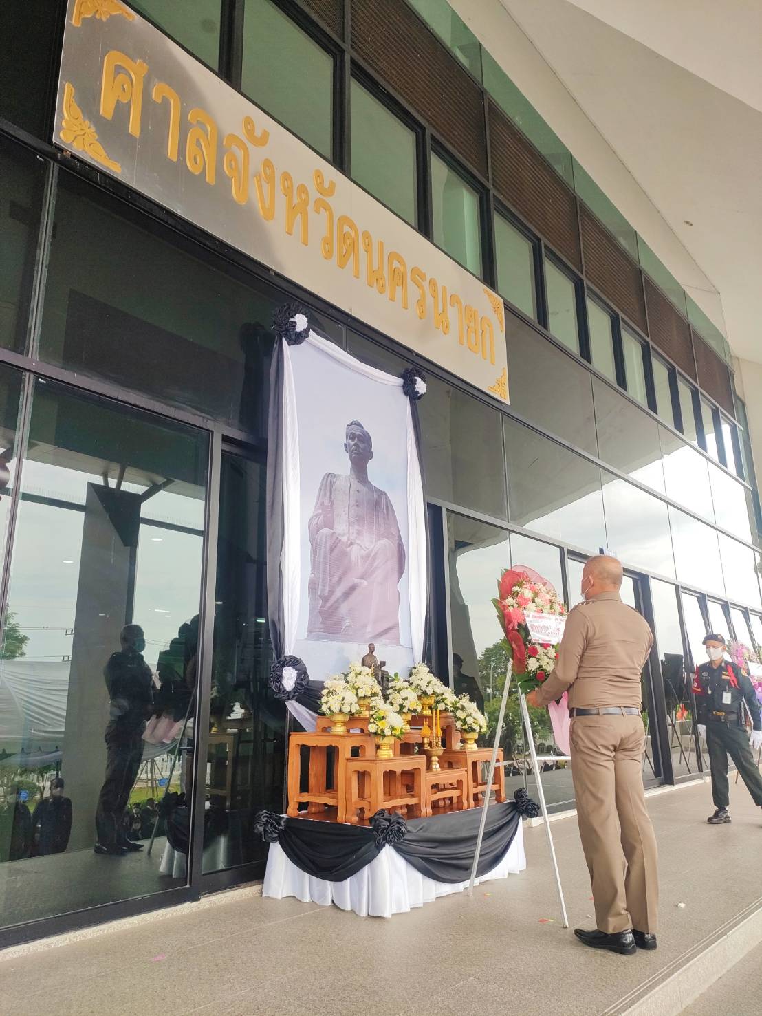 7 ส.ค. 66 7 สิงหาคม 2566 โดย adminnakhonnayok / ภารกิจผู้บังคับบัญชา วันที่ 7 ส.ค. 2566 เวลา 06.30 น. พ.ต.อ.ธวัชชัย สนิกวาที รอง ผบก.ภ.จว.นครนายก พร้อมด้วย ผกก.ฯ,หน.สภ.ฯ,พงส.ฯ และข้าราชการตำรวจในสังกัด ร่วมพิธีวางพวงมาลาถวายเป็นราชสักการะ พิธีถวายสดุดีน้อมรำลึกถึงพระเกียรติคุณพระเจ้าบรมวงศ์เธอพระองค์เจ้ารพีพัฒนศักดิ์ กรมหลวงราชบุรีดิเรกฤทธิ์ พระบิดาแห่งกฎหมายไทย ณ บริเวณด้านหน้าอาคาร ศาลจังหวัดนครนายก ถนนรังสิต-นครนายก ตำบลบ้านพร้าว อำเภอบ้านนา จังหวัดนครนายก FacebookFacebookXXLINELine